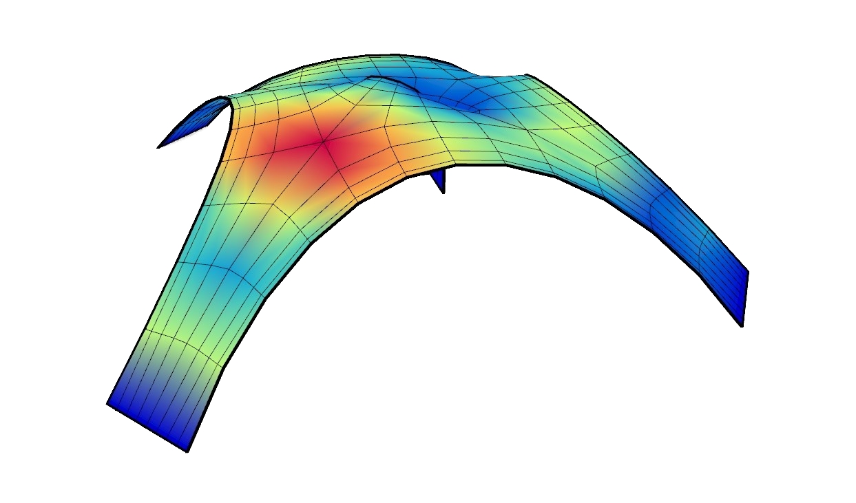 The grasshopper script shows how to perform a form-finding in order to find a shell that works purely in compression with the use of Kangaroo2 and to analyse the structural behaviour with the use of Alpaca4d.