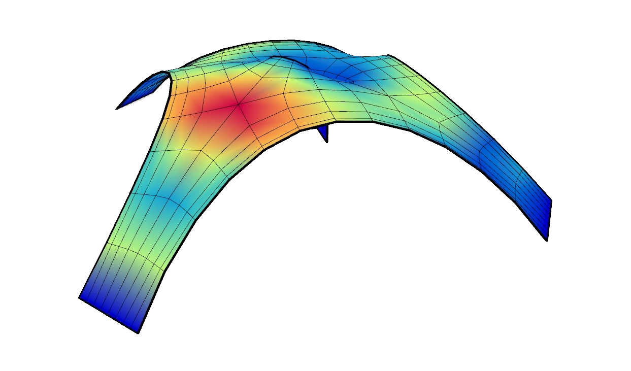 The grasshopper script shows how to perform a form-finding in order to find a shell that works purely in compression with the use of Kangaroo2 and to analyse the structural behaviour with the use of **Alpaca4d**.